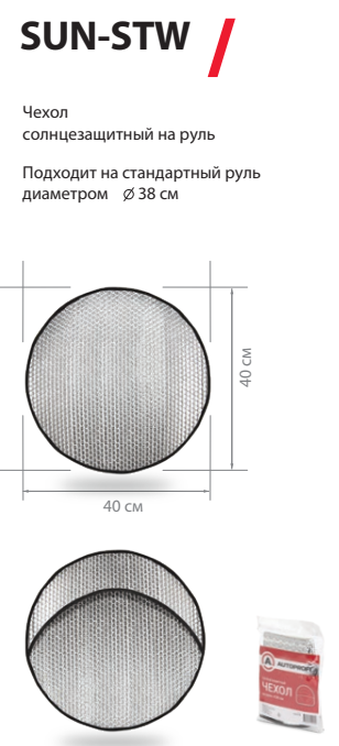 Зачастую, на автомобилях с завода, устанавливается очень красивое рулевое колесо из комбинации дорогих материалов - натуральная кожа, алькантара или карбон, которые при длительном воздействии палящего солнца, могут прийти в негодность и потерять свой премиальный вид. Чтобы гарантированно сохранить любой материал рулевого колеса, используйте специальный солнцезащитный чехол на руль AUTOPROFI SUN-STW из материала Single Bubble. Такой чехол подходит на все модели легковых автомобилей (с диаметром рулевого колеса до 40 см).
