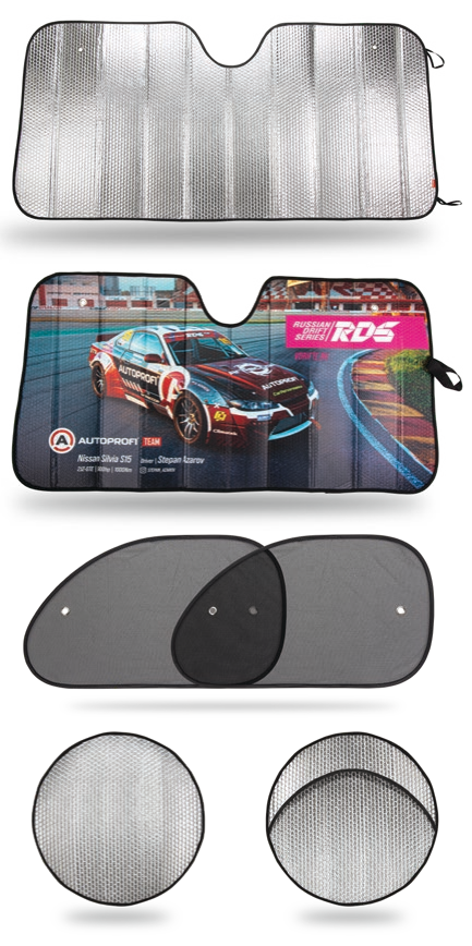 Для защиты максимальной площади стёкол разных автомобилей, существует три размера солнцезащитных экранов: M 130x60, L 140x70 и XL 150x70 сантиметров.