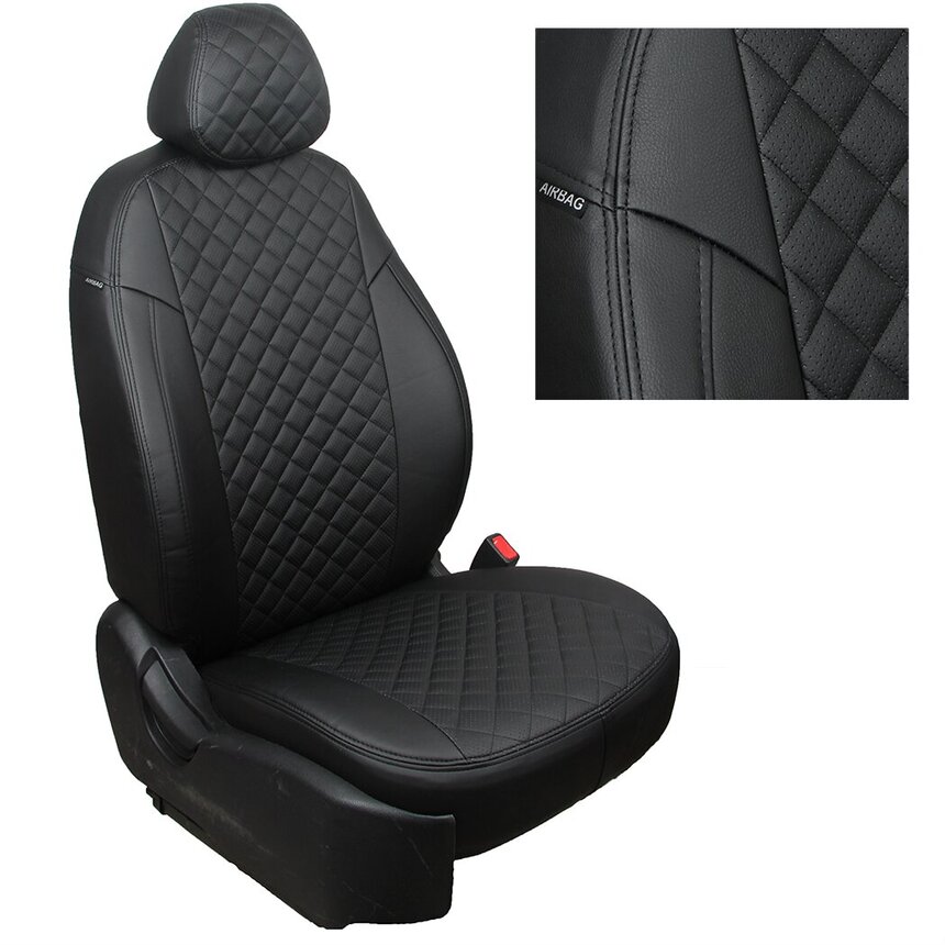 ХЕНДАЙ ЭЛАНТРА 6 (AD) седан. Задняя спинка 40/60 + 2 подголовника. Сидение сплошное. С 2015 г. Чёрная Экокожа Ромб