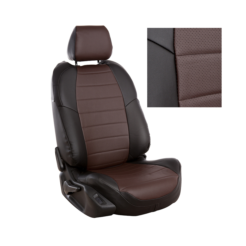 Тыльные и боковые части чехлов сделаны из гладкой экокожи, а центральная часть - из перфорированной экокожи.