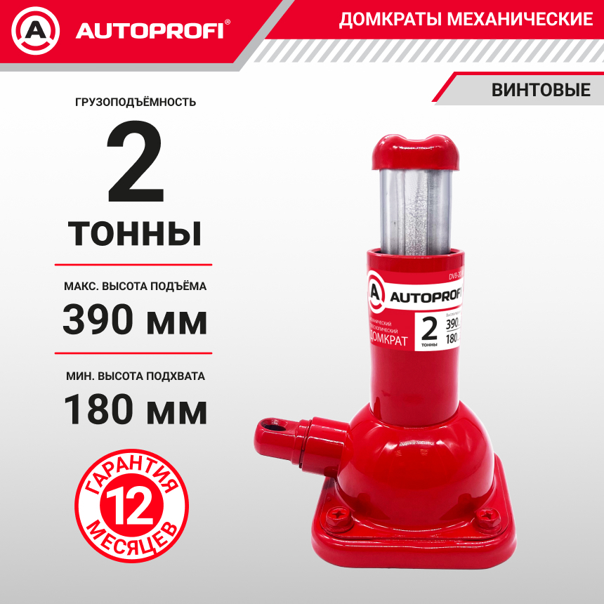 Домкрат бутылочный AUTOPROFI, механический, телескопический, винтовой, 2 тонны,