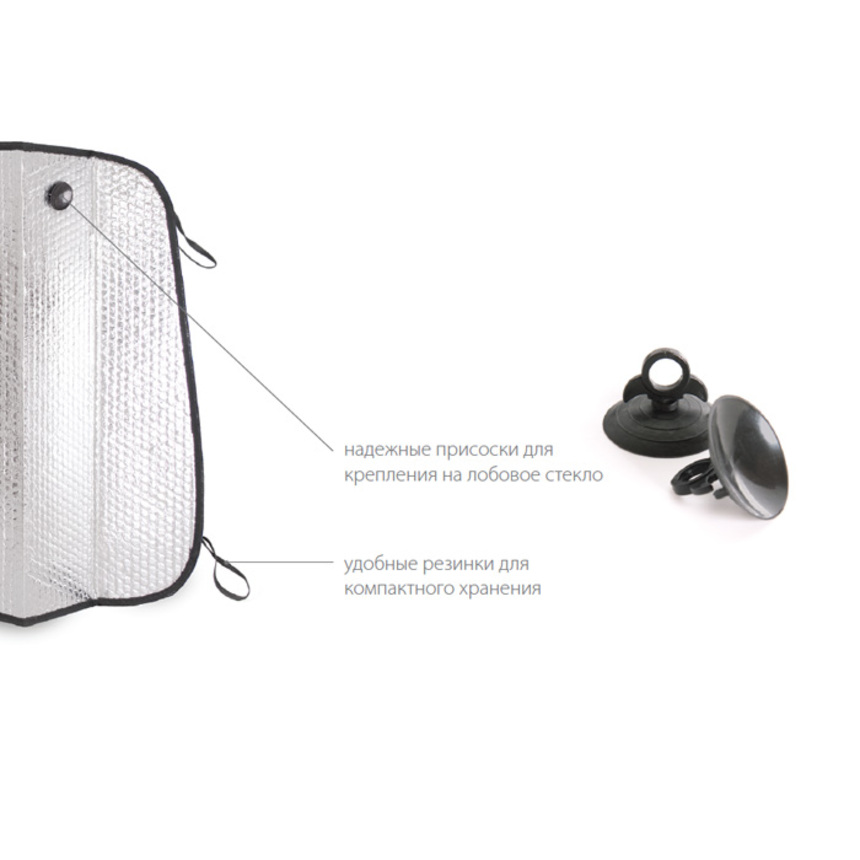 В качестве материала экрана используется ПВХ-плёнка с двусторонним светоотражающем покрытием. В плёнку интегрированы наполненные воздухом ячейки, которые обеспечивают дополнительную теплоизоляцию шторки. На стекло экран крепится с помощью идущих в комплекте присосок. В сложенном виде он занимает минимум места и легко помещается в кармане спинки переднего сиденья.