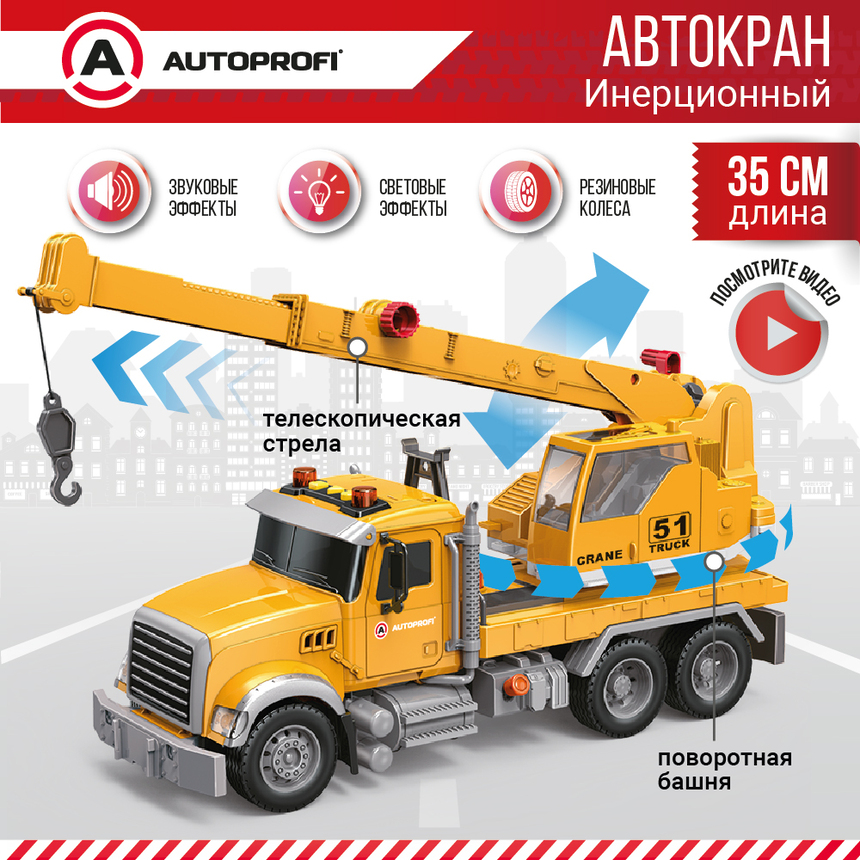 Инерционный городской транспорт с подвижными деталями "Автокран" CA-035/CRAN