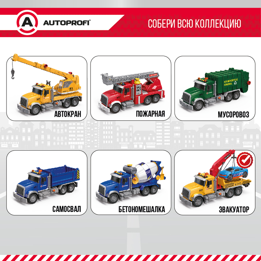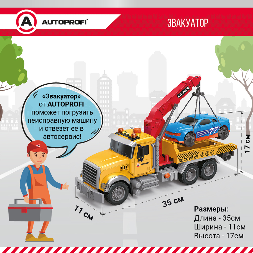 Инерционный городской транспорт с подвижными деталями "Эвакуатор", свет, звук, 35 см