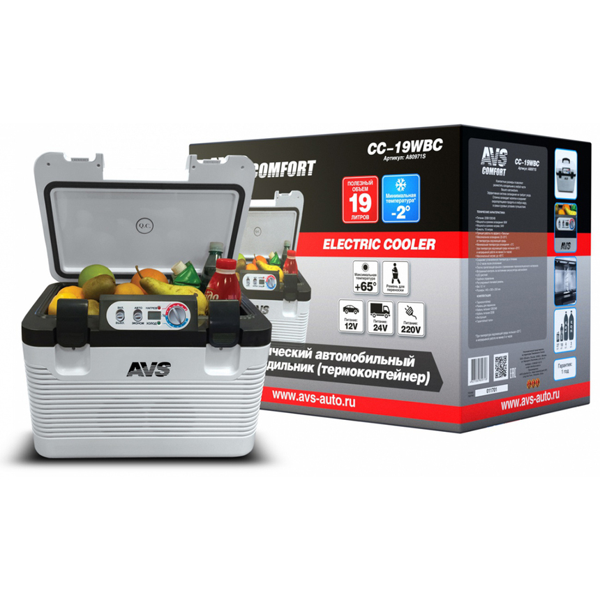 Холодильник автомобильный AVS CC-19WBC 19л 12V, 24V, 220V / A80971S