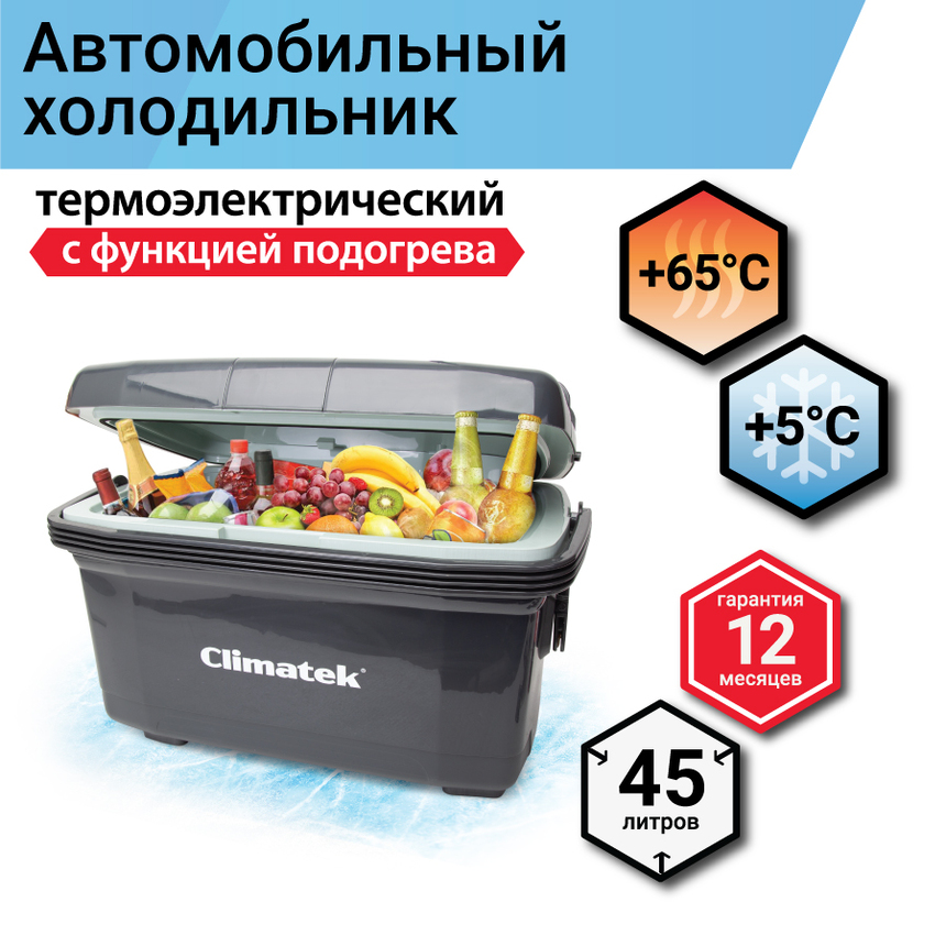 Функциональность - два режима: нагрев и охлаждение делают холодильник Climatek незаменимым помощником в любом путешествии. В жарких день он сохранит продукты и напитки прохладными, а в морозный день поможет насладиться теплой едой.