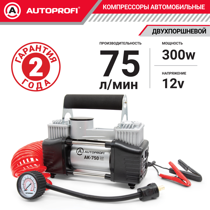 Воздушный двухпоршневой автомобильный компрессор АК-750 это новинка в линейке AUTOPROFI "SILVER".
