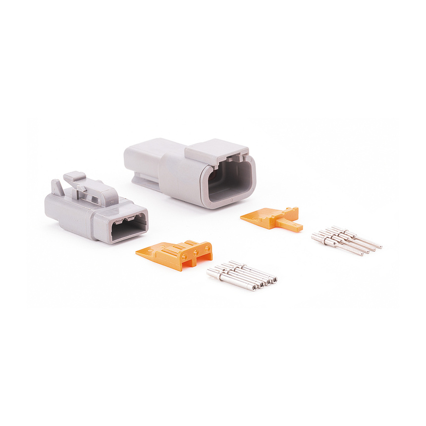 Коннекторы обеспечивают гарантированный контакт в диапазоне температур от -55 до +125 °С. Степень защиты контактов: IP67. Габариты штыревого разъема («папа»): 27,56х14,00х20,73 мм. Габариты гнездового разъема («мама»): 41,15х16,21х16,26 мм. Комплект продается в сборе.
