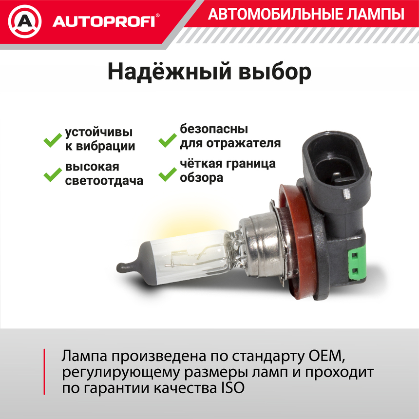 Линейка галогеновых ламп AUTOPROFI LONG LIFE - Галогеновые лампы со световым потоком на 30% мощнее чем у стандартных ламп. Имеют увеличенный более чем в 2 раза рабочий ресурс..