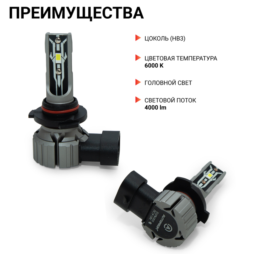 Лампа светодиодная Autoprofi, Х2 компак, HB3, 12V / 15W, 6000K, 4000 Lm, комплект 2 шт.