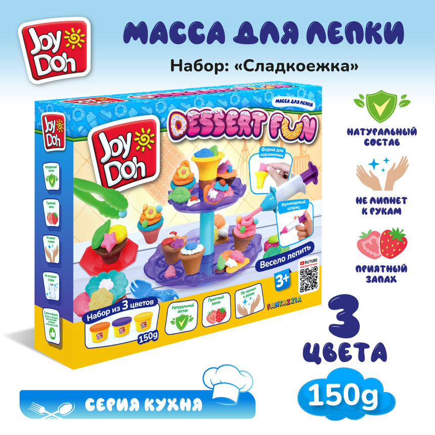 Масса для лепки Joy Doh, набор DESSERT FUN - СЛАДКОЕЖКА, поднос с пресс-формами, 15 аксессуаров, 3 баночки с тестом, (3 х 50 г.)