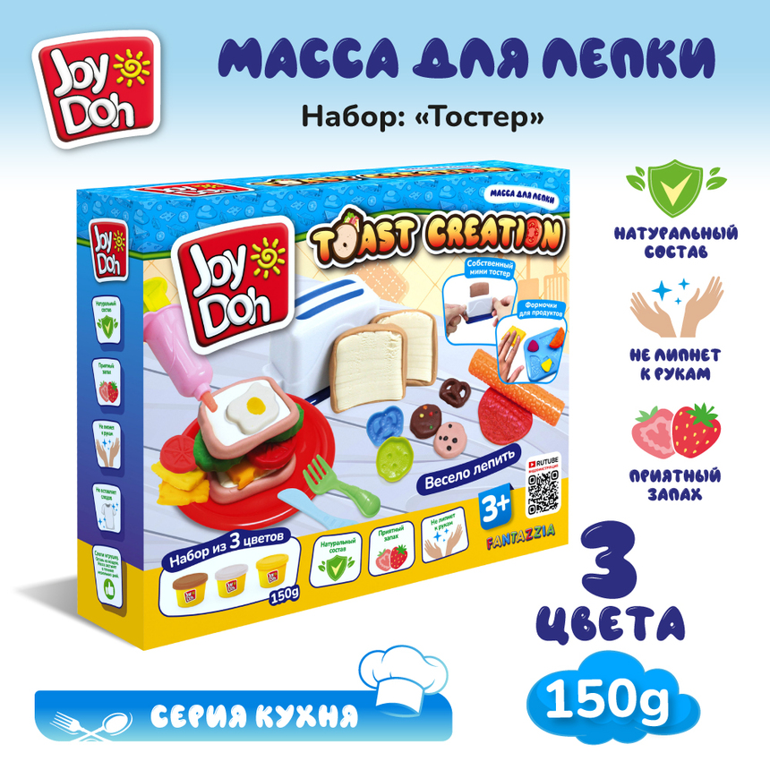 Масса для лепки Joy Doh, набор TOAST CREATION - ТОСТЕР, 15 аксессуаров, 3 баночки с тестом, (3 х 50 г.)