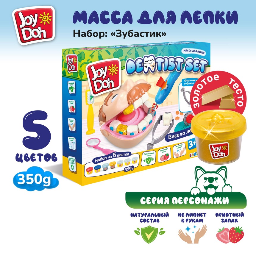 Масса для лепки Joy Doh, набор DENTIST SET - ЗУБАСТИК с золотыми зубами, 7 аксессуаров, 7 баночек с тестом, (7 х 50г.)