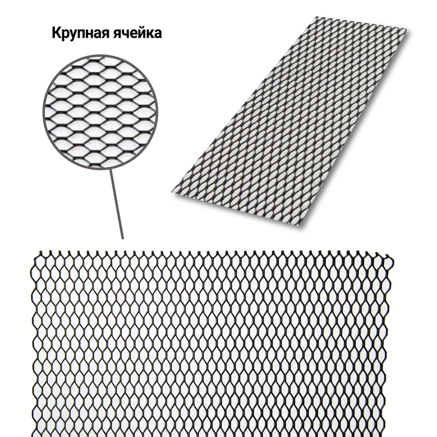 Сетка для защиты радиатора, 100 х 25 см. крупная ячейка, алюминий, черный