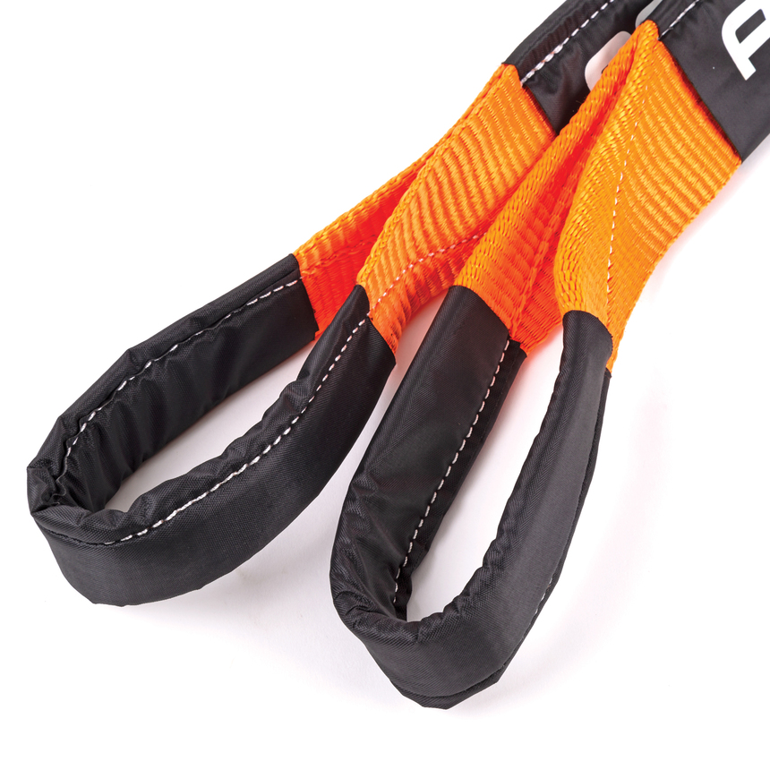 • В процессе эвакуации, когда выдергивающий автомобиль набирает скорость, стропа натягивается и накапливает кинетическую энергию. Как только стропа натянулась, она стремиться вернуться в свое первоначальное состояние и "отдает" накопленную энергию, что значительно помогает тянущему автомобилю. Таким образом эффективность эвакуации становится в разы выше, а рывок получается более мягким, щадящим, не травмирующим технику.