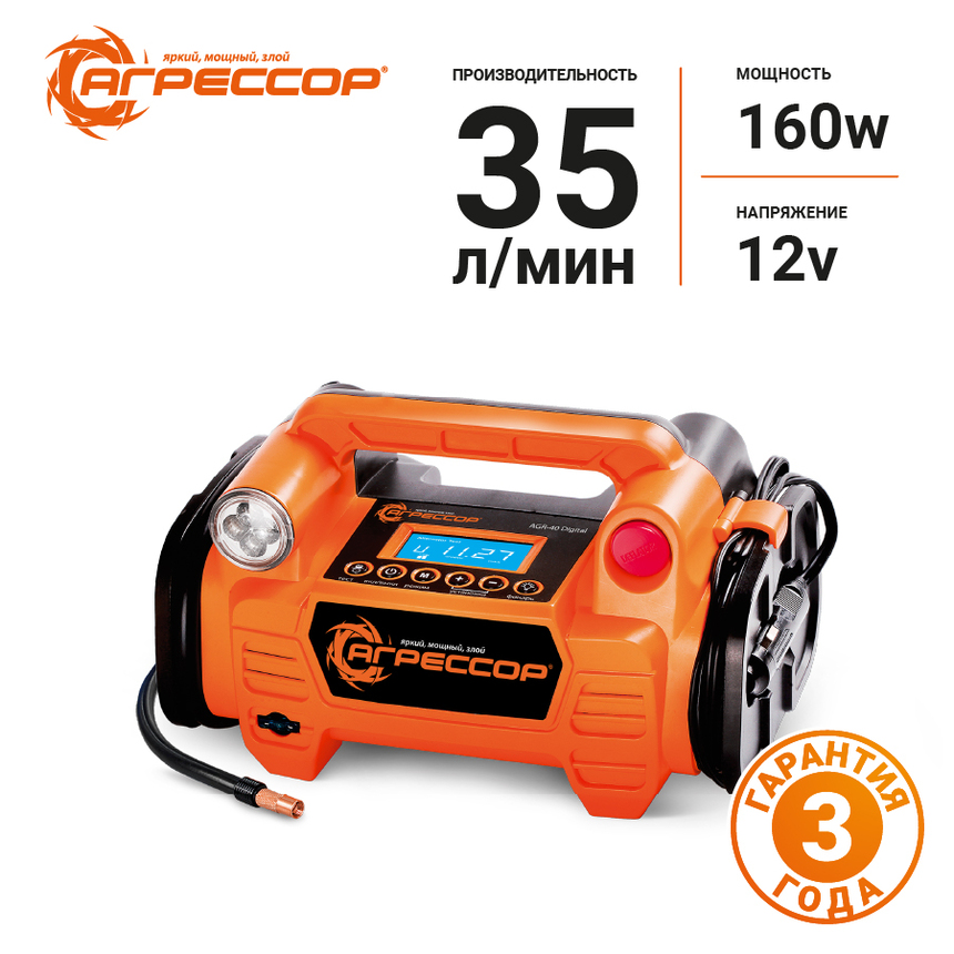 Цифровой компрессор АГРЕССОР, 35 л./мин., "5 в 1" AGR-40 Digital