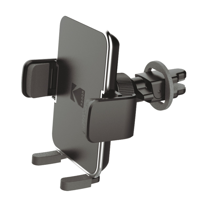 Автомобильный держатель "KODAK", крепление на дефлектор воздуховода, ширина захвата 50-96 мм., металлическая основа, поворотный механизм на 360, подходит для чехлов-книжек, оригинальный механизм зажима SCREW Fix.  Размеры: 74x93x98мм., 1/6/36