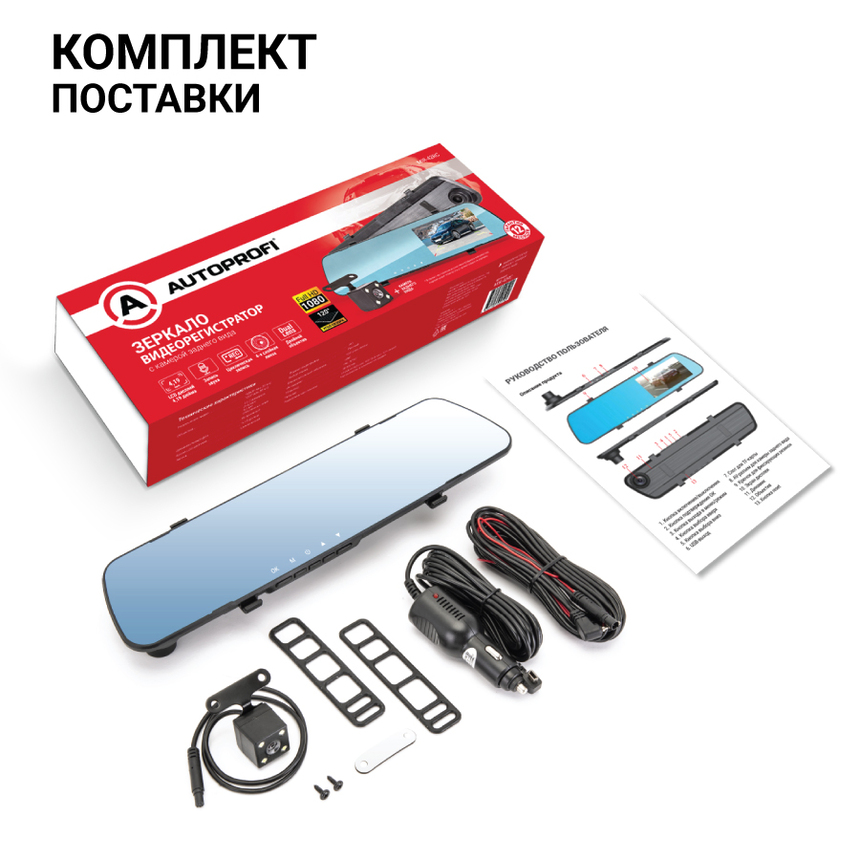 Видеорегистратор Autoprofi, 1080Р, угол обзора 120°, дисплей 4,19", камера заднего вида, память до 128Gb